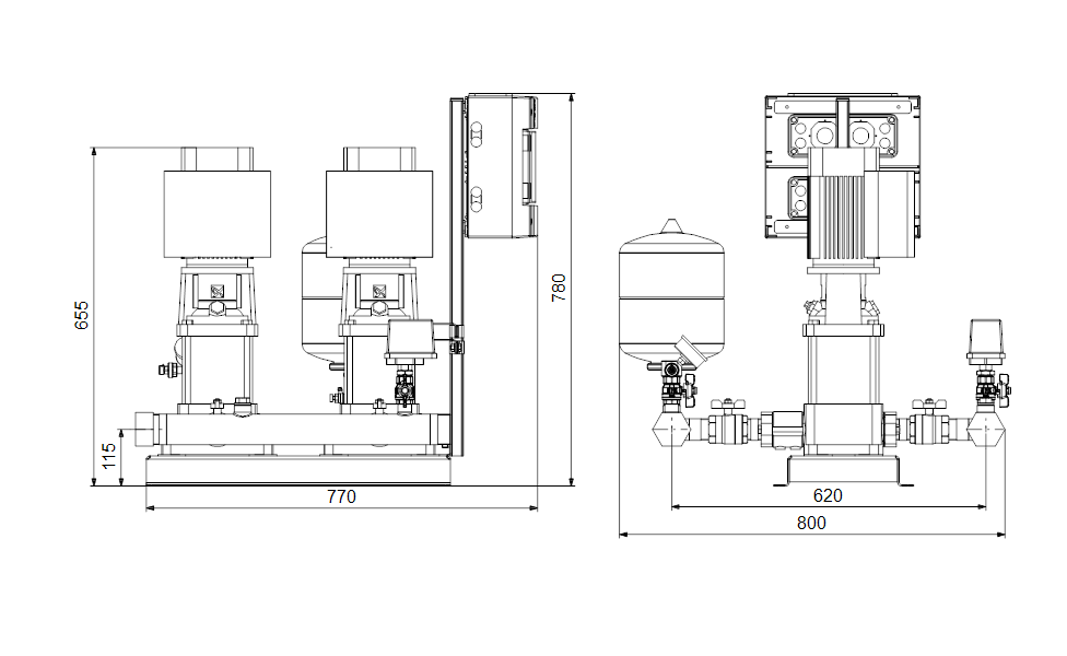 Енергоефективні установки підвищення тиску для чистої води. Доступні з 2-4 паралельно з’єднаними насосами з частотними перетворювачами, містить вбудований контролер і всі необхідні фітинги.
